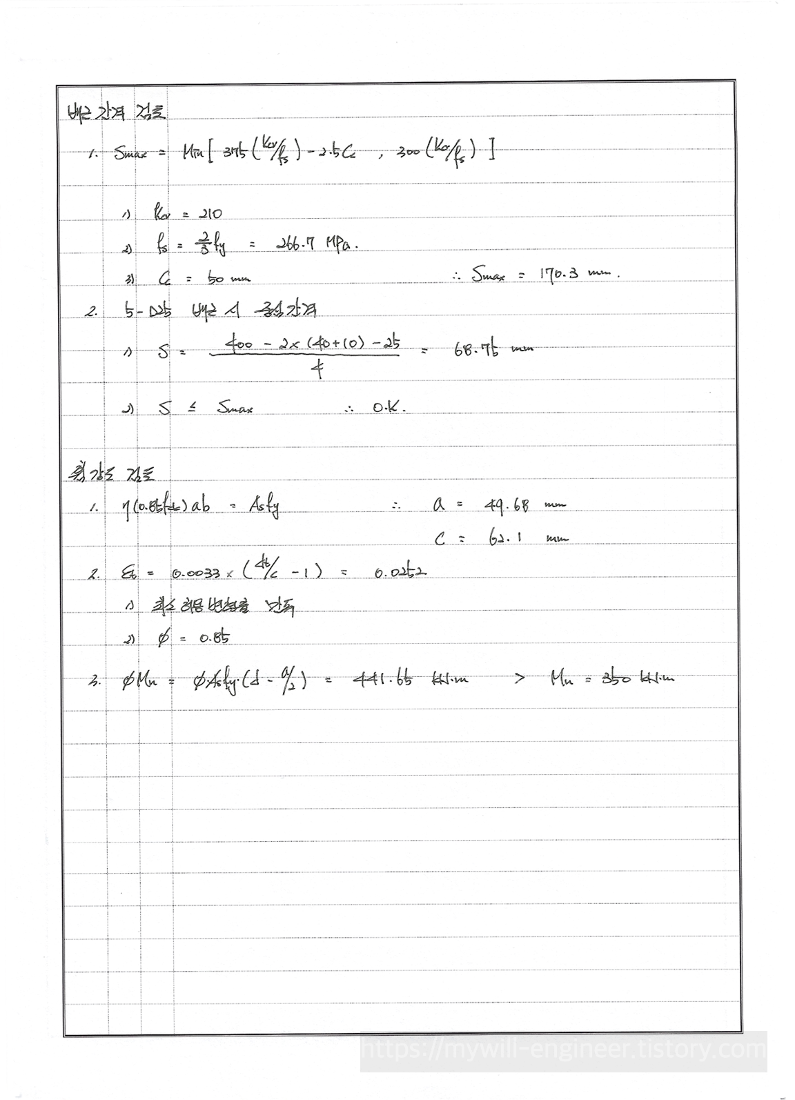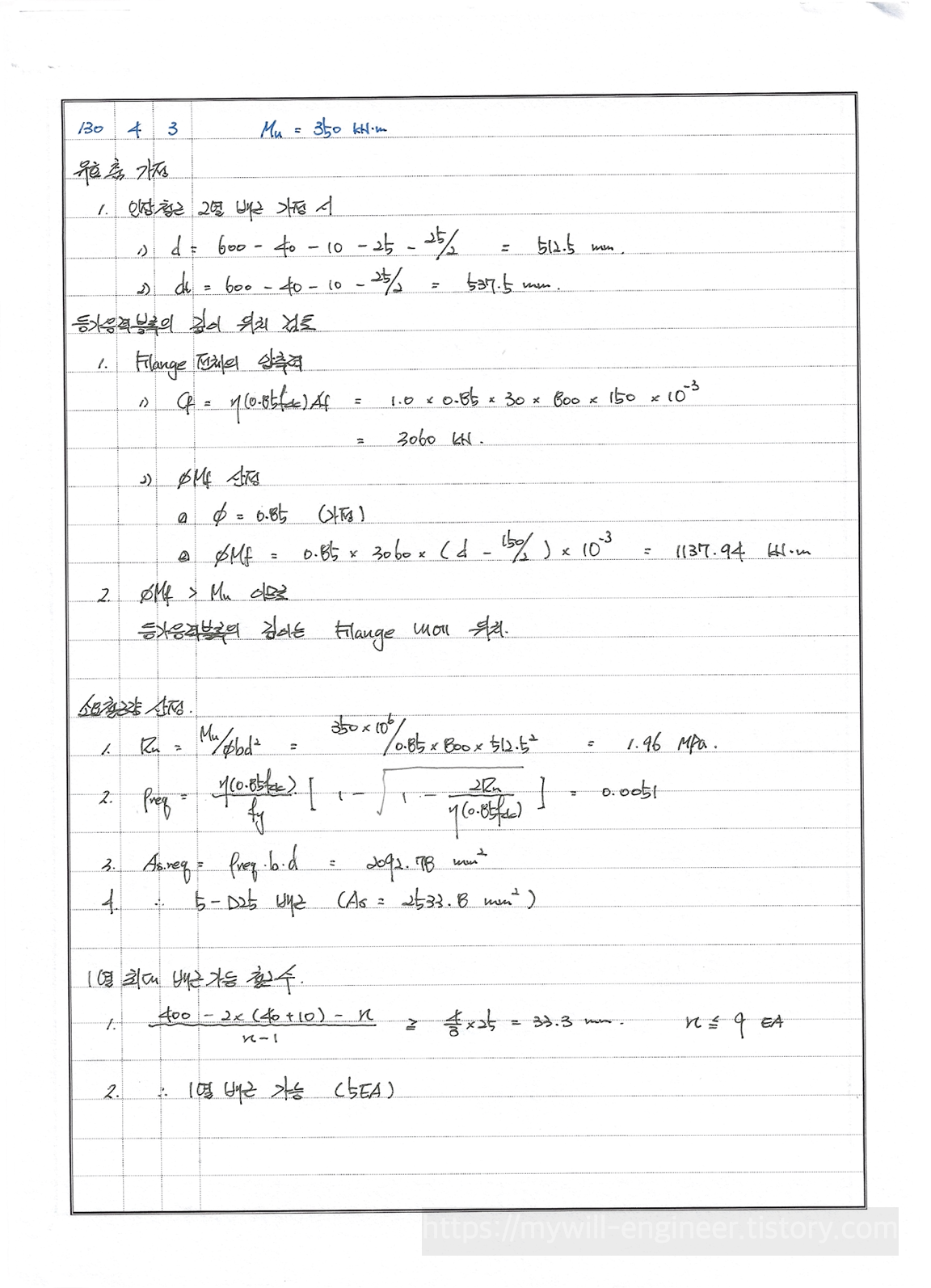 4. 무의식적으로 문제를 풀다보니 포물선-직선이 아닌 등가응력블럭으로 문제를 풀이했습니다.