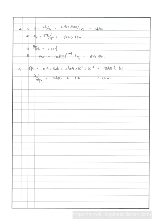 2. 주어진 조건에서의 압축부재 안전성 검토를 요하는 문제입니다.