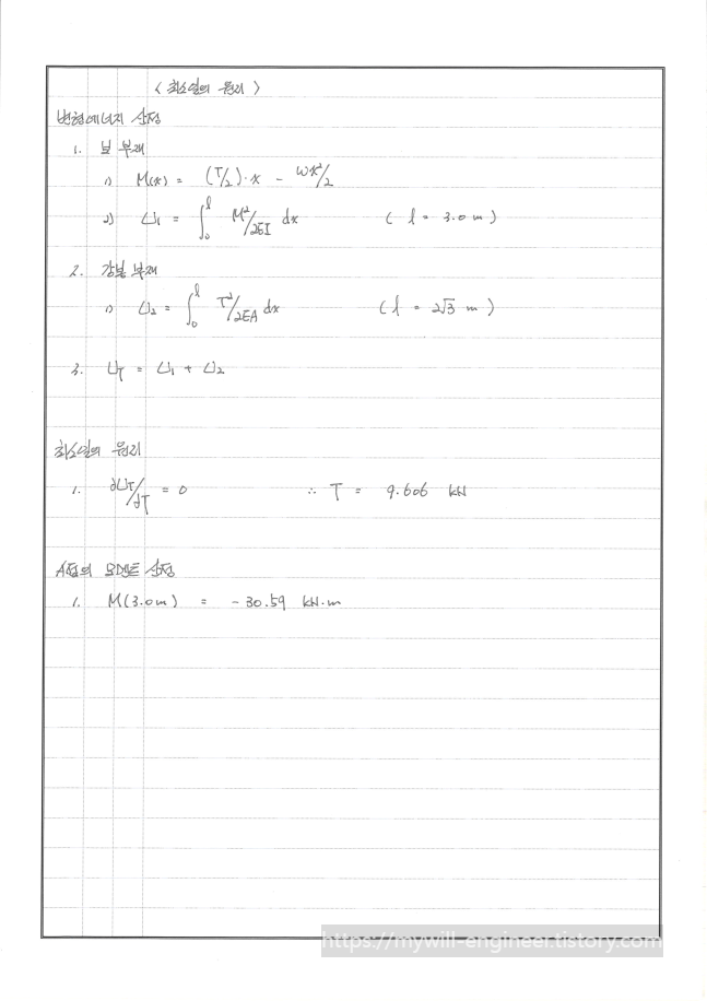 5. 최소일의 원리와 변위일치법 2가지 방법으로 풀었습니다.