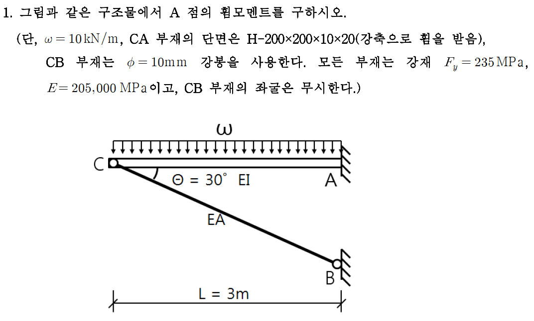 3. 부정정 차수를 구하고(이 문제는 1차 부정정) 부정정력을 정의한 후 구할 수 있어야 합니다.