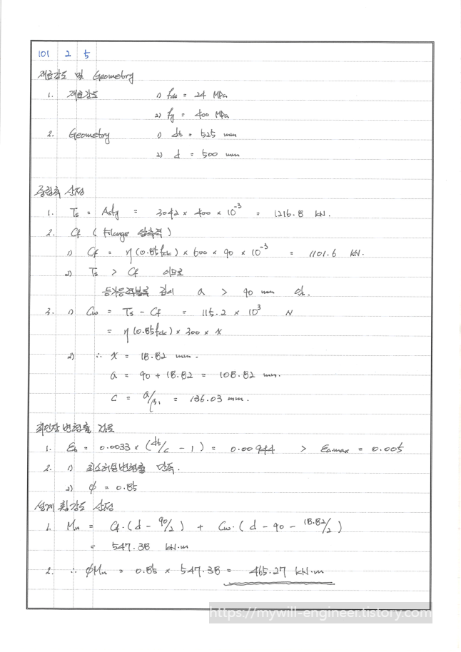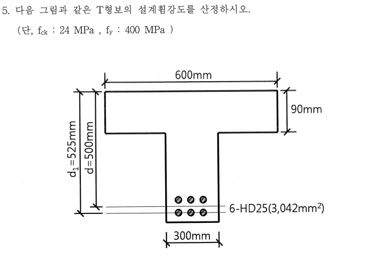 2. 가장 기본적인 유형의 T형보 문제입니다. 중립축의 정의를 명확히 이해하고 있다면 매우 쉬운 문제입니다.
