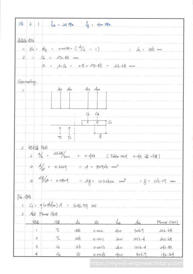 3. 각 철근 열별로 압축/인장을 구분하고 그에 따른 Force를 산정할 수 있어야 합니다.