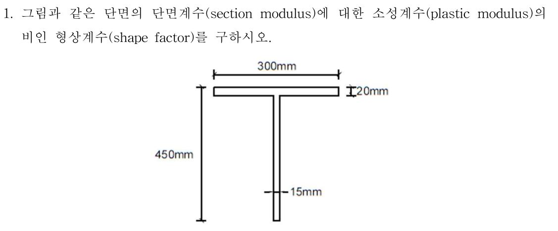 - 주어진 단면에 대한 탄성계수 및 소성계수에 대한 이해를 묻고 있는 문제입니다.