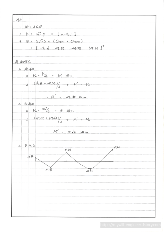 3. 지점침하에 의한 효과는 결국 모멘트가 발생한다는 것으로 고려하고, 침하에 의한 부가 발생 모멘트를 구할 수 있다면 그리 어렵지 않은 문제입니다.